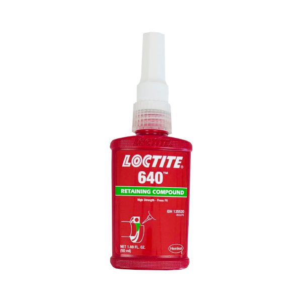 דבק חד רכיבי בחוזק גבוה- להדבקה וקיבוע לחלקים גליליים 50 מ”ל LOCTITE 640 – דבק קיבוע ירוק בחוזק גבוה לחלקים גליליים גדולים; מתאים לשימושים הדורשים זמן יישום ארוך.