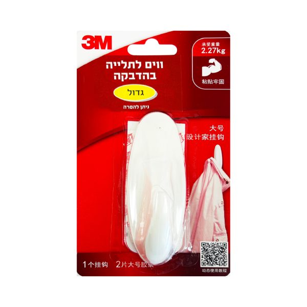 ווים לתלייה בהדבקה 3M אליפסה גדול (1 במארז) – וו אליפסה גדול יחיד המיועד לנשיאת עד 2.27 ק”ג