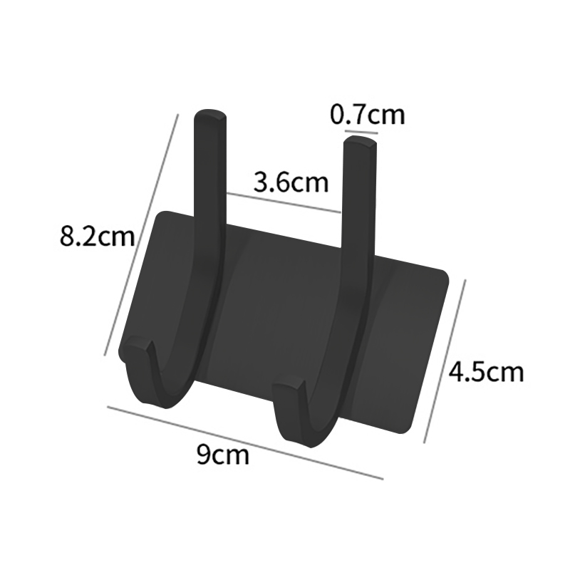 וו תליה נירוסטה בהדבקה דגם הדסון (מלבן מוארך + 2 ווים) בצבע שחור