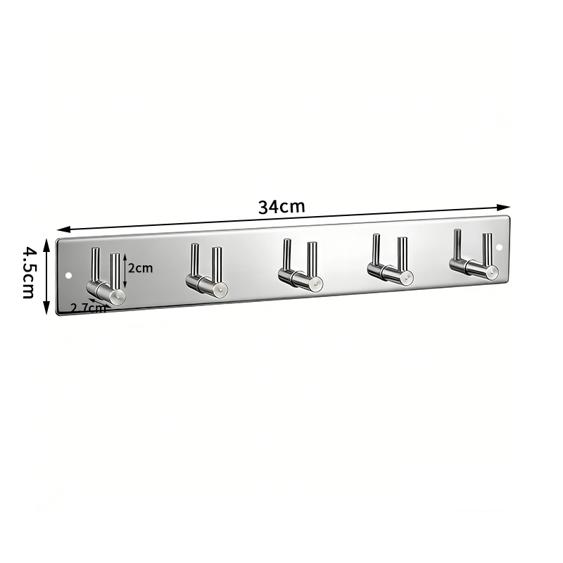 קולב נירוסטה לתליית מגבות/אביזרים בהברגה דגם ריאן (5 ווים) כסף מבריק